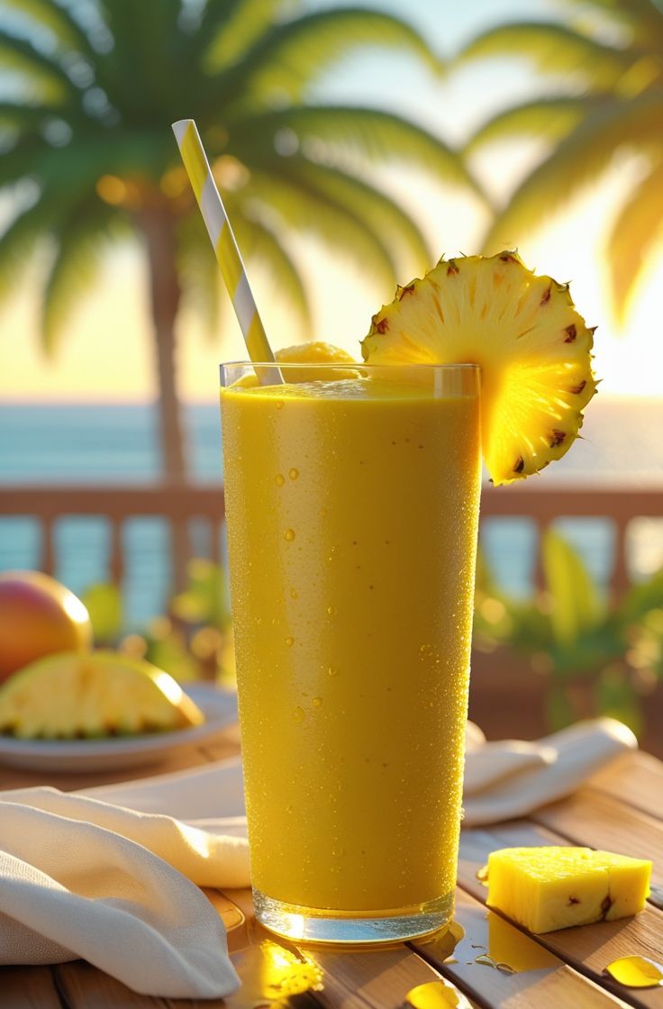 Suco Tropical Refrescante de Abacaxi, Manga e Hortelã
