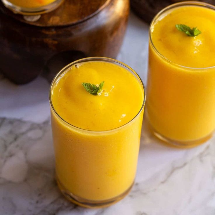 Bata no liquidificador o abacaxi, a manga, a água, o suco de limão e o açúcar. Coe, se desejar. Sirva gelado e finalize com folhas de hortelã.